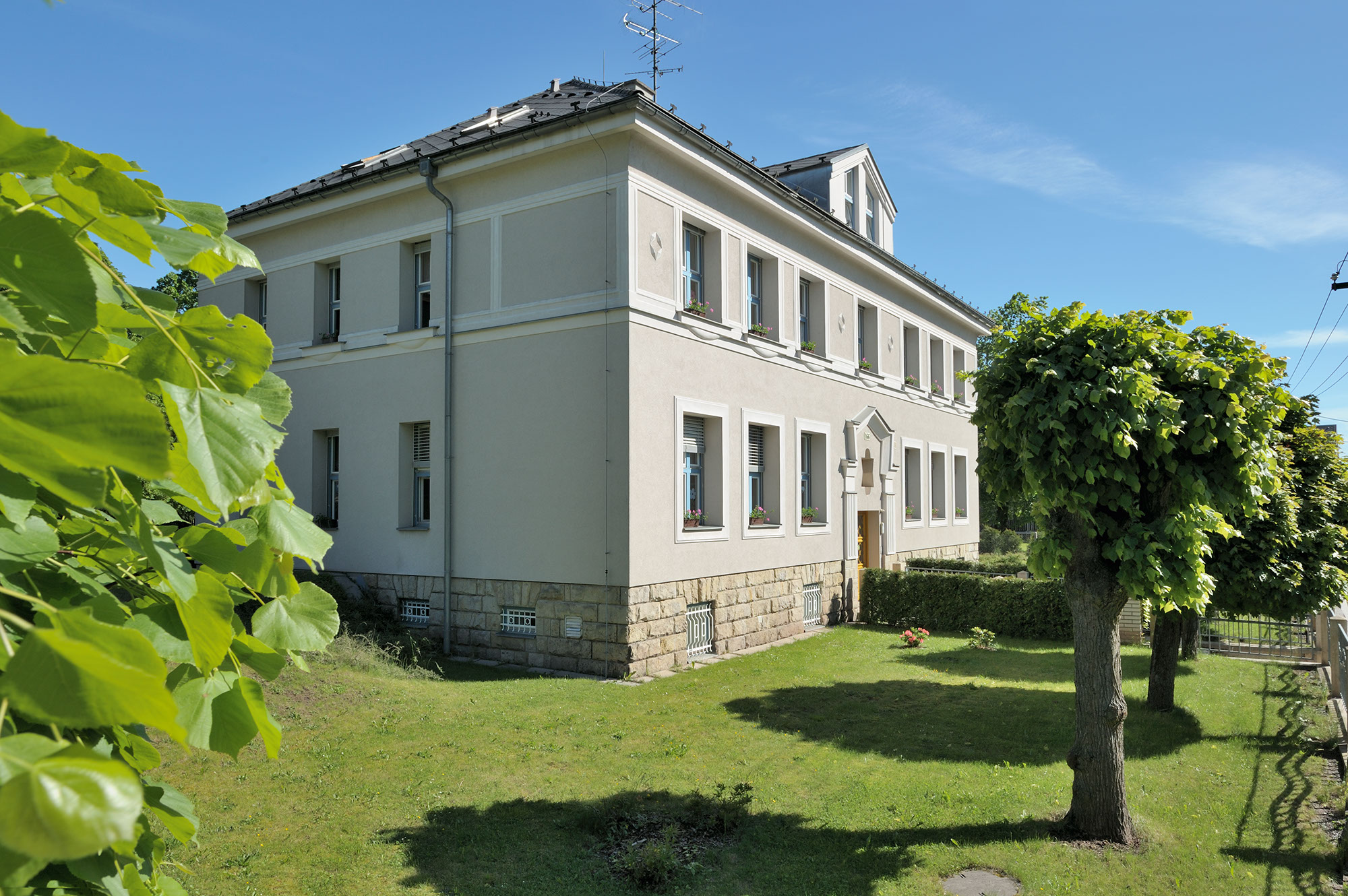 Dům úřednictva textilní firmy P. A. Šlechta a syn je dílem drážďanského architekta Rudolfa Bitzana z let 1919–1921 ve stylu art deco. Jeho stavitelem byl lomnický Vácslav Slaba. Dům představuje zajímavý fenomén bydlení pro firemní zaměstnance – vyšší úředníky, k jehož rozvoji došlo právě za první republiky.